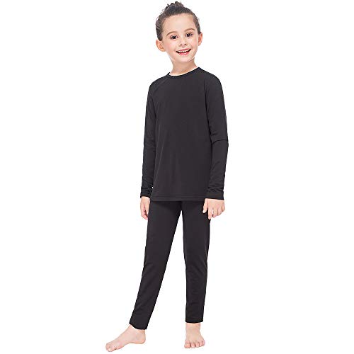 • 💎【TOP & BOTTOM INCLUDED】 2 Piece kids thermal underwear set consists of a long sleeve scoop neck fleece top and full length thermal pants with elastic waistband, offers free movement. Kids will feel relaxed with these perfectly hidden long johns base layer thermal set.